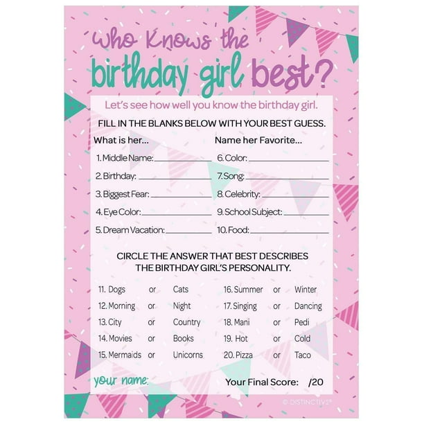 Who Knows The Birthday Girl Best Birthday Party Game 10 Player Cards Distinctivs Walmart Com